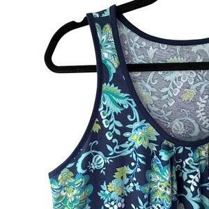 LANDS’ END | NWOT FLORAL COTTON TANK DRESS COVERUP NAVY BLUE & GREEN | MEDIUM