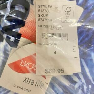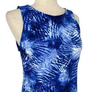 LANDS END NWT Tie Dye Palm Sleeveless Tankini Swim Top Blue Size 4