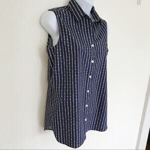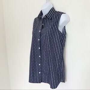 LANDS’ END Navy & Pink Polka Dot Supima Cotton Sleeveless Shirt, 2 / S