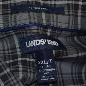 LANDS' END No Iron Twill Men's Sz 2XLT 18-18.5 Traditional Fit Button Front Shirt - Like New Condition