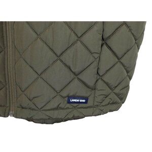 LANDS END Olive Green Quilted Mid Weight Vest Size L 14/16 Classic Preppy