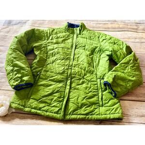 Lands end puffer jacket. Size large(14/16). Excellent condition. Grass green jacket with navy blue trim. Run. Two front zipper pockets. Toggle cinch at waist to keep you warm. 100% nylon. Water resistant. Approx. P2P 24”. Length 27”. Perfect go to jacket.