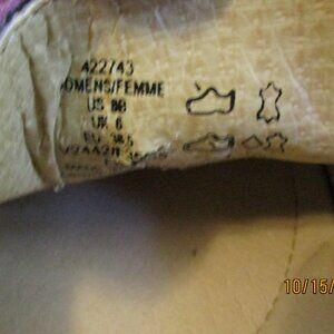 Like new, maybe worn once. One shoe has remains of a sticky tag inside (can be seen in photo). Excellent condition.