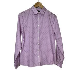 LANDS’ END Pink White Pinstripe Swiss Dot Supima Button Front Shirt Size 6