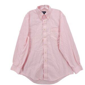 LANDS END Pinpoint Pink Button Down Long Sleeve Shirt 100% Cotton Size 17 - 34