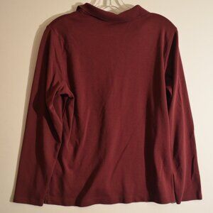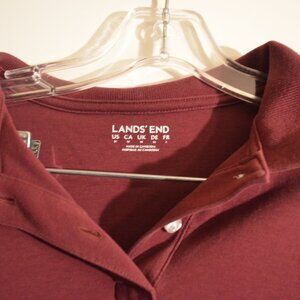 LANDS' END Polo Collar Neck 2 Buttons-Up Burgundy Long Sleeves Soft Cotton Tee M
