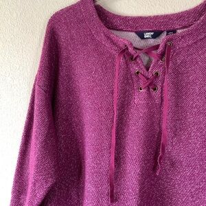 LANDS' END Pullover Tunic Sweater Boucle Tweed Top Casual Travel Magenta Pink 2X