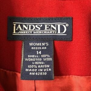 LANDS’ END - Red 100% Wool Classic Button Front Blazer w/ Pockets - Size 14