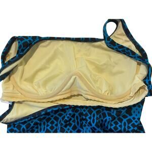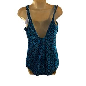 LANDS' END, SIZE 14, BLUE AND BLACK ONE PIECE SWIMSUIT