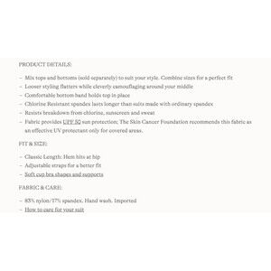 The Lands' End swimsuit top in size 10 DDD . Made from a blend of nylon and spandex, this blouson tankini top by Lands' End offers built-in bra support, padding, and adjustable straps for a perfect fit. a bottom is not included.