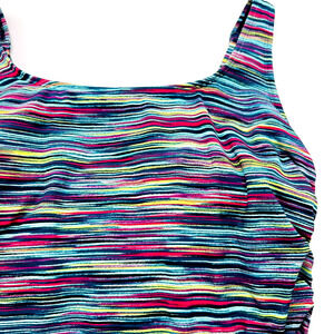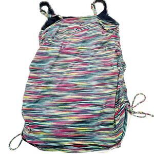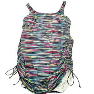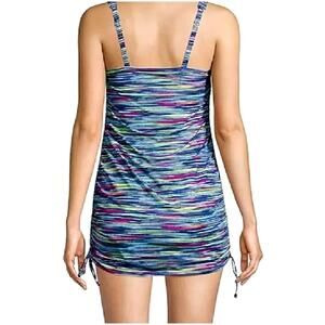LANDS' END Size 18 Colorful Striped Swim Dress Ruched Sides Slimming One Piece