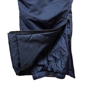 LANDS’ END Dark Blue 100% Nylon Ski Pants, Snowboarding, Winter Sports. Zip fly, elastic waist, cargo pockets, reinforced knees, snow gaiters. Lined, insulated, waterproof.