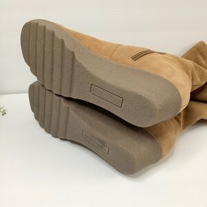 LANDS' END Suede Knee High Boots Wedge Heel Zip Up Sherpa Lined Neutral Women 11