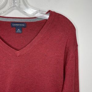 LANDS END Sweater Mens Medium 38-40 Red V-Neck Pullover 100% Cotton