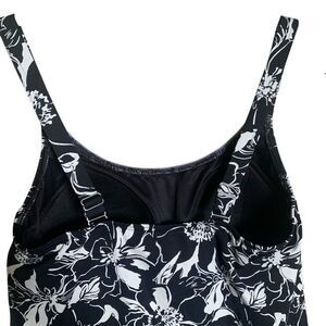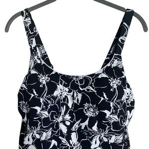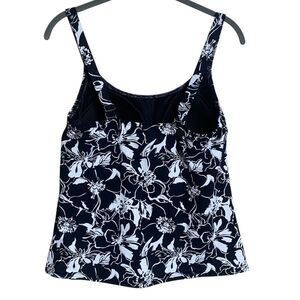 LANDS END Swim Tankini Top Womens Size 10 Floral Black White Padded Modest Sun Adjustable Straps