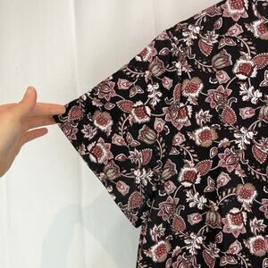 LANDS' END Sz M Paisley Floral Short Sleeve Button Front Midi Dress Multicolor
