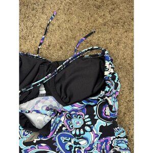 LANDS END Turquoise Black Purple Print Tankini Swim Top Beach Resort Sz 8 Petite