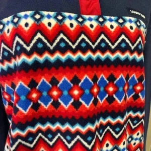 LANDS’ END UNISEX PULLOVER FLEECE SNAP NECK JACKET•SIZE MED MULTI COLORED