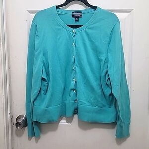 pre owned lands end women's plus size mint green long sleeve cardigan sweater