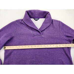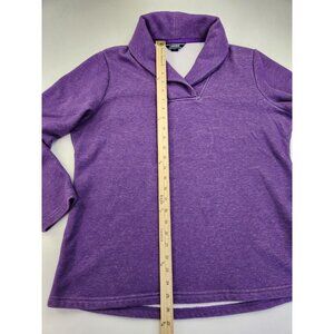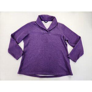 LANDS' END Women L Purple Pullover Collared V-neck Cotton Heavy Shirt-Sweater