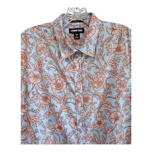 LANDS END Women's Petite Size 16 16P Blouse - Button Up, Floral, Blue, Peach, Brown, No Iron, 100% Supima Cotton
