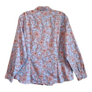 LANDS END Women Petite 16P Blouse Button Up Floral Blue Peach Supima Cotton 44"