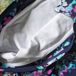 LANDS' END Women Sz 12 Tankini Blue Purple Floral Swim Wire Bra Slimming Tummy