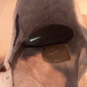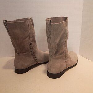 Great boots from LAND'S END you'll pull from your closet over and over. Super comfy with the flat soles, and a great retro look with the slouchy warm graphite gray suede uppers with top-stitch detail. An ankle zip makes them easy to pull on and off. Women's size 7.5D US or 38 EU. Show no wear, although pre-owned. Please see photos. Like-new!