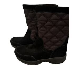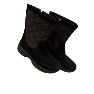 LANDS END Women's Black Quilted Suede All Weather Mid-Calf Zip Boots Size 7.5 B.