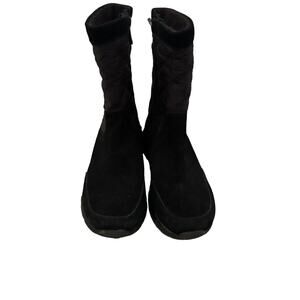 LANDS END Women's Black Quilted Suede All Weather Mid-Calf Zip Boots Size 7.5 B