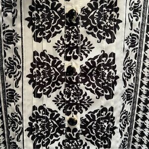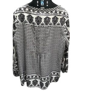An exceptionally nice blouse from quality label LANDS' END. A black & white houndstooth pattern combines with a black & white border print to create this silky loose fitting blouse.