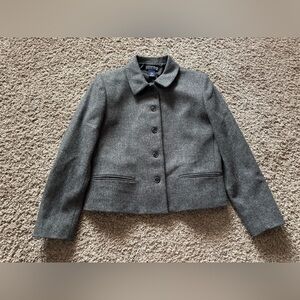 LANDS END Women's Gray Heather Wool Blazer Jacket Size 10 Petite