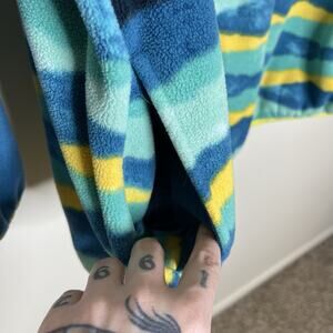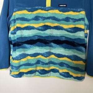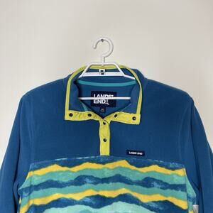 LANDS END Women's Heritage Fleece Snap Pullover Sweater Blue Striped Sz 2X.