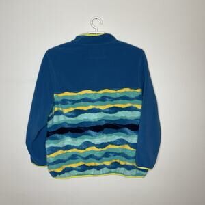 LANDS END Women's Heritage Fleece Snap Pullover Sweater Blue Striped Sz 2X