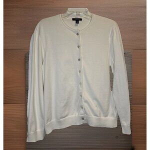 LANDS’ END Women’s Ivory Button Down Long Sleeve Cardigan Sweater Sz XL