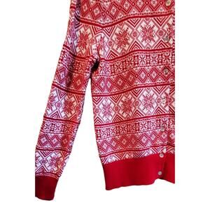 LANDS END Women's Size M Medium Cardigan Sweater - Nordic Red & White Snowflake Pattern, Button Up, 100% Supima Cotton
