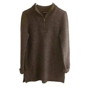 LANDS' END Women's Navy/Gray Cotton Blend Long-Sleeve Pullover 1/3 Zip Shirt. EUC sz Small (6-8) Pit to pit: 18", Length: 28", Sleeve Length: 25".