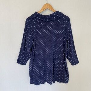 LANDS’ END Women’s Size 2X 20/22 Blue & White Polka Dot Soft Fold Cowl neck Top