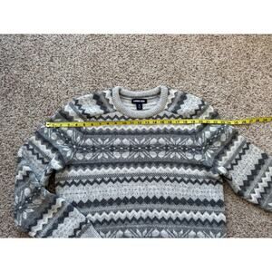 LANDS END Wool Blend, Heavy & Thick, knitted sweater. Super warm & comfy!! Size Medium Mens, in EXCELLENT condition. Gray & White/Cream design. in Excellent pre-owned conditon.