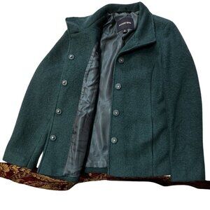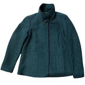 LANDS' END Wool Short Coat Jacket Women Size 8 Green Winter Boxy Retro Gorpcore