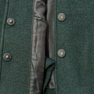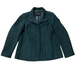 LANDS' END ~ Women's size 8 green wool blend jacket. Fully lined. Snap front with button at collar. Front slash pockets.