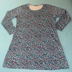 LAND’S END floral ditzy print long sleeve round neckline above the knee super soft stretchy, fit to flare, jersey knit