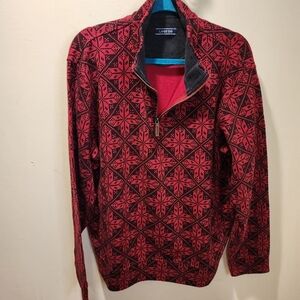 LAND'S END men's quarter zip 100% cotton Red winter sweater size L