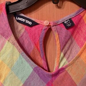 LANDS END multicolor plaid linen sundress, Size Medium Tall -- POCKETS!