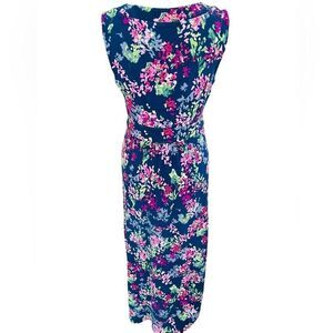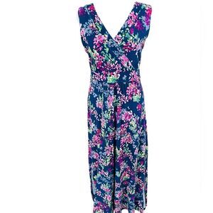 LANDS’ END navy floral PIMA cotton blend maxi dress size M (10-12). V neck Criss cross bodice , set in waistband, side slits. PIMA cotton, rayon, and spandex blend. Approximate measurements are pit to pit 17”, waist 15”. Slightly stretchy.