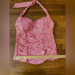 LANDS END size 8 Swim top- adjustable tie halter top. Red white purple pattern