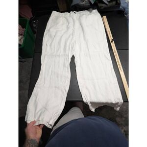 LANDS END 100% Linen Pants Waist Mid Rise Wide Leg Women's 16