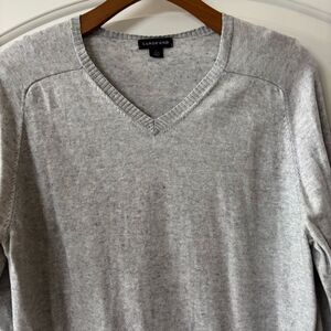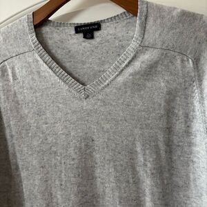 LANDS' END Cotton Cashmere Sweater Men's Xl Gray V-Neck Long Sleeve pullover