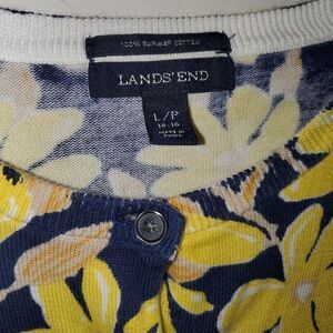LAND'S END NAVY YELLOW TAN FLORAL BUTTON DIWN CARDIGAN SIZE LARGE