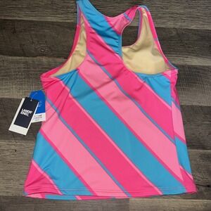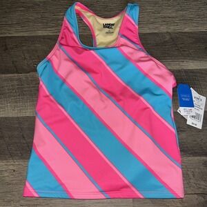 LANDS' END~NEW~Striped Blue & Pink Tankini Swim Top~Girl's Size Large~10-12~NWT
